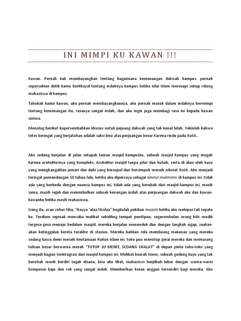 Contoh Monolog Bahasa Inggris Tentang Peran Sebagai Mahasiswa - 2 : Pidato dalam bahasa indonesia mungkin kamu bisa lakukan tanpa persiapan, namun bagaimana jika kamu dihadapi dengan situasi untuk melakukan pidato bahasa inggris .